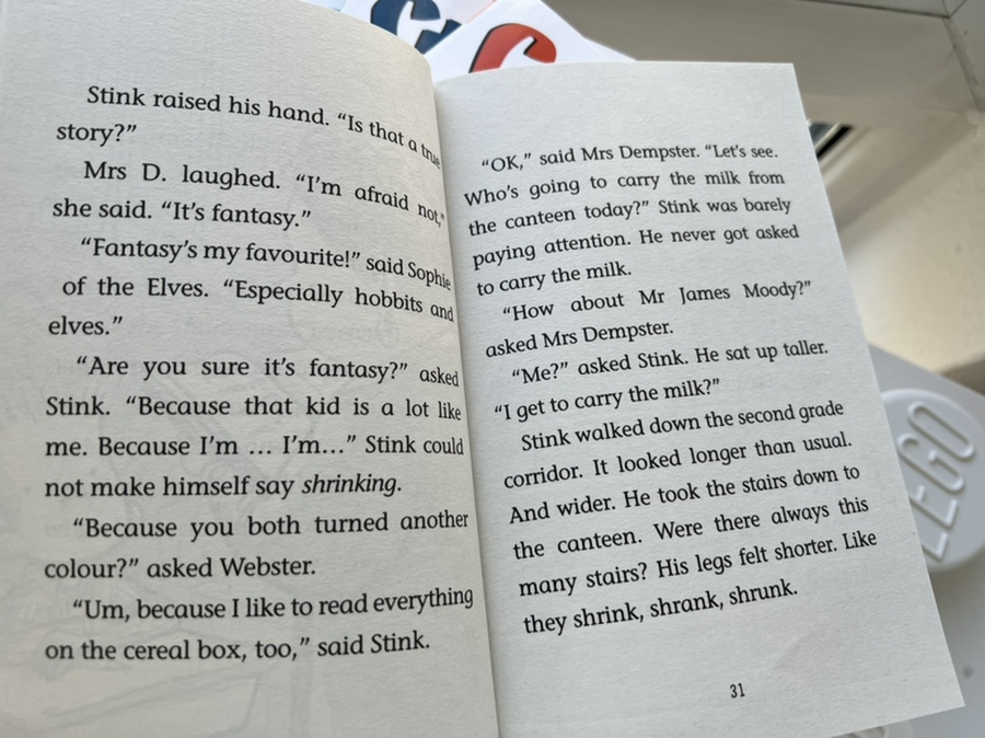 챕터북으로 유명한 주디 무디의 동생 스팅크 무디의 이야기로 초등학교 2학년 남자아이의 일상생활에 대한 이야기입니다.