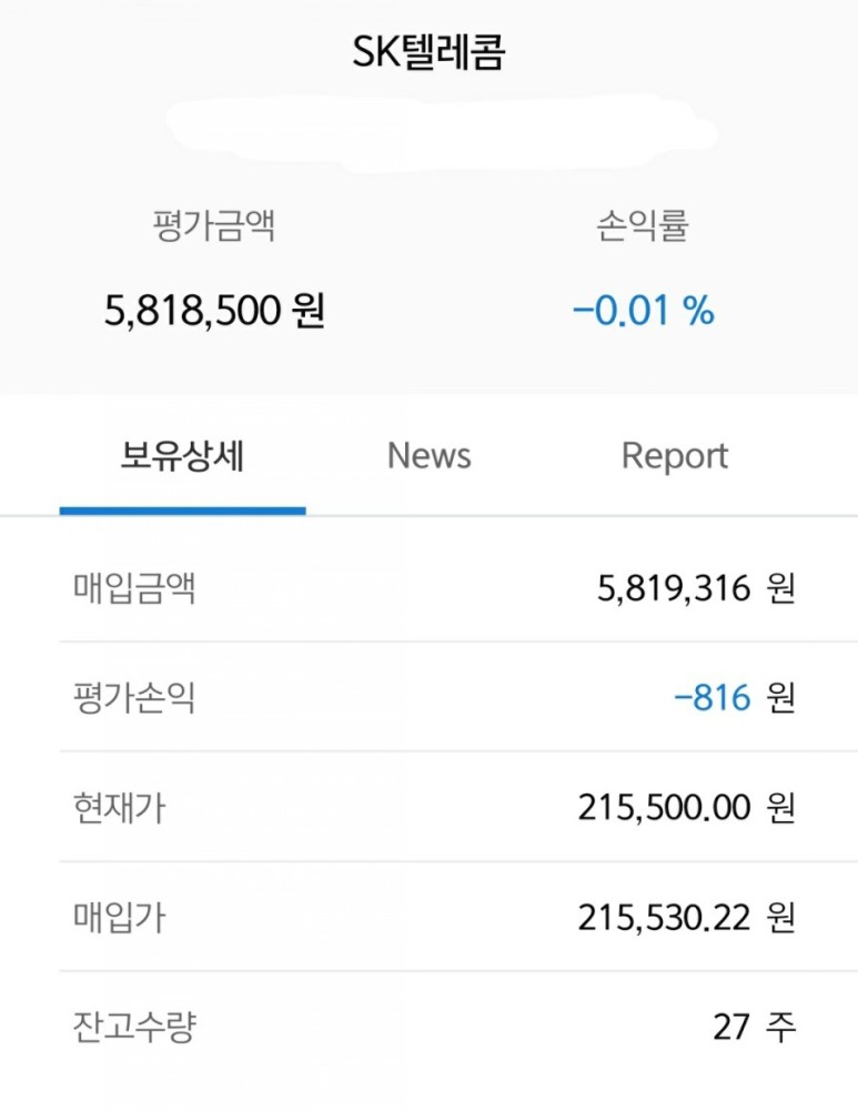 마지막으로 저의 투자내역입니다. 작년부터 분할 매수를 시작해서 올해는 배당도 많이 받았어요. 거의 신경쓰지 않고 보유하고 있는 종목이죠.