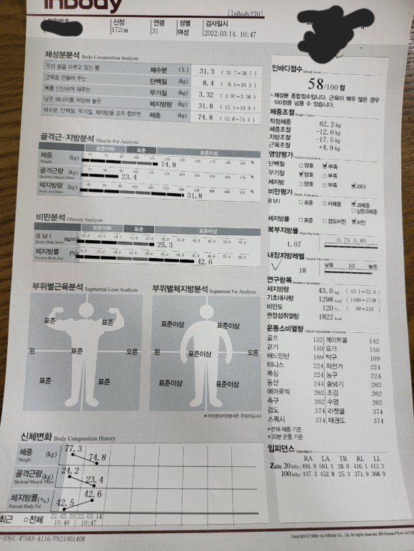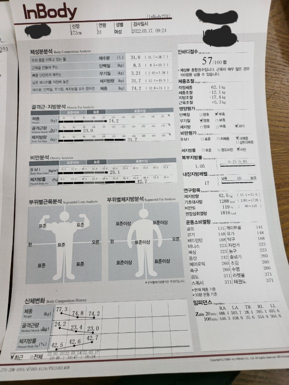 그래서 팔을 쓴 의원도 찾아왔고, 문제가 많다던 간 기능은 많이 좋아졌지만, 코로나의 시작과 함께 내 몸은 적신호가 켜졌다ㅠㅠ다.이어트 한약과 크로스핏으로 57kg까지 뺐지만 반년 만에 68kg, 그리고 6개월 만에 70kg 돌파. 그리고 다이어트를 시작하기 전인 2022년 2월까지 나는 77kg이라는 무서운 속도로 살이 쪄 심각한 우울증에 대한 기피증까지 왔다.