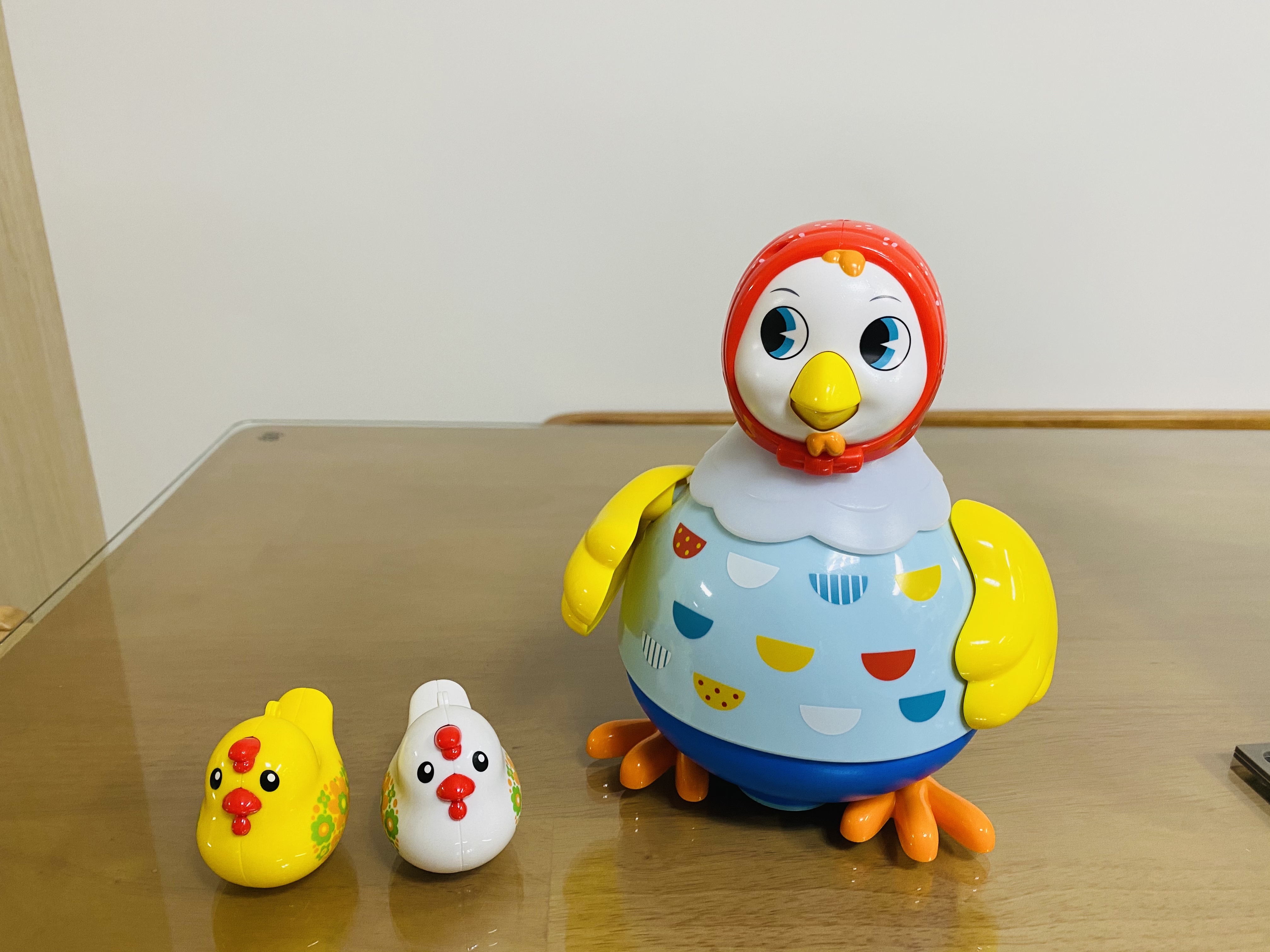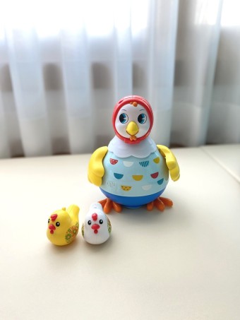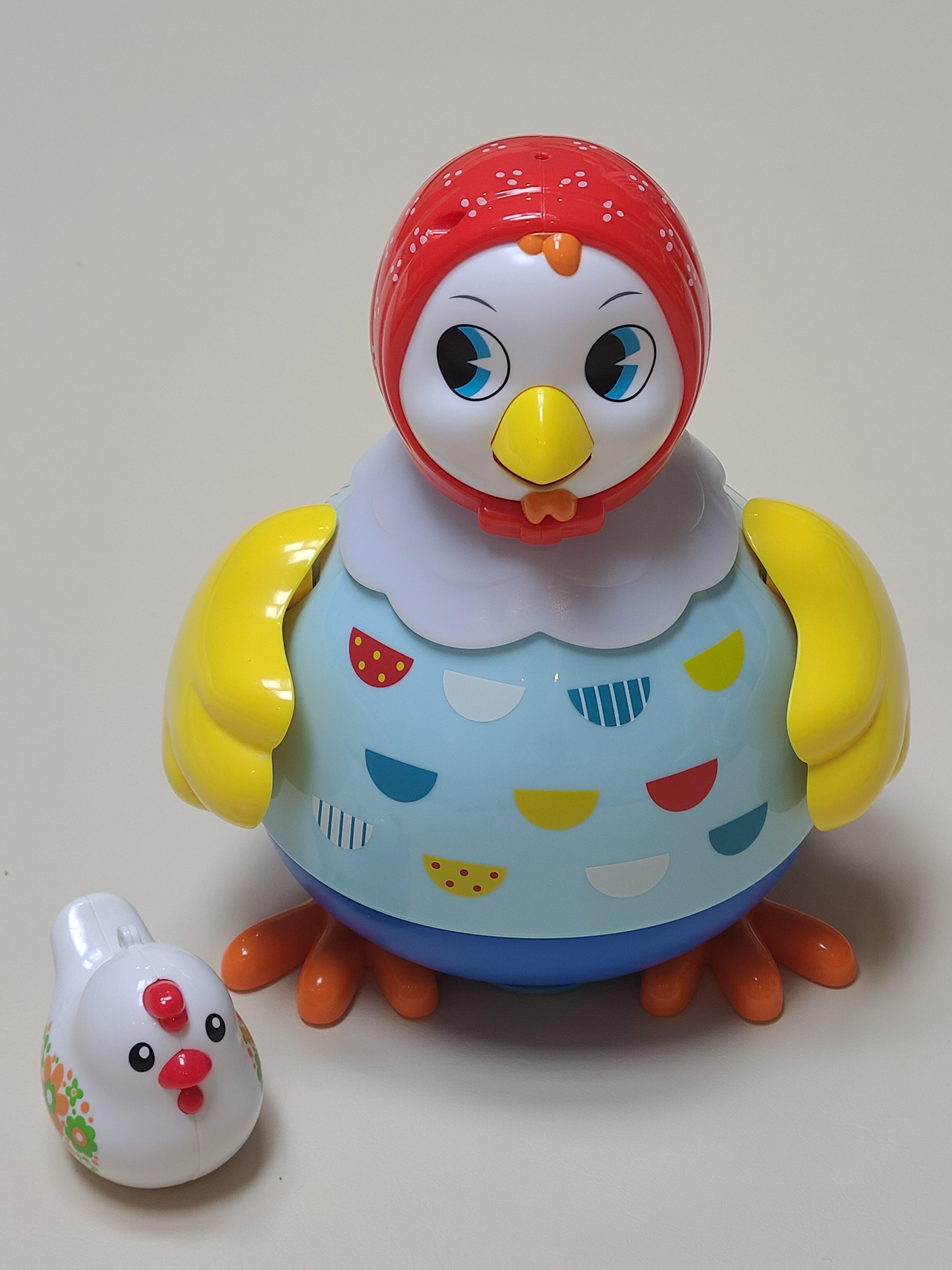 돌아기 장난감으로 추천하는 코코맘은 엄마닭과 아기닭 미니코코 2마리로 구성되어 있는데 전체적으로 색상이 매우 선명하고 눈에 띕니다.