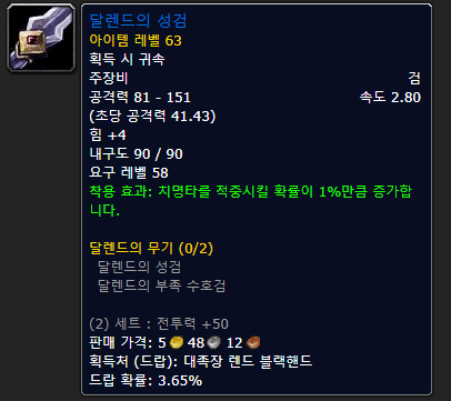 손목은 아래층에 늑대 하리콩이 주는 이게 마지막 왕이에요 레이드 아이템 전까지는 이걸 쓰세요.근데 문제는 하층 탱커가 많이 없어서 준비가 쉽지 않아요. ( ´ ; ω ; ` )