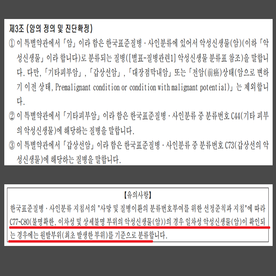 주치의가 진단서에 암에 해당한다고 판정했음에도 보험계약에서는 암 진단비의 일부만 보상처리되는 경우가 종종 있습니다.