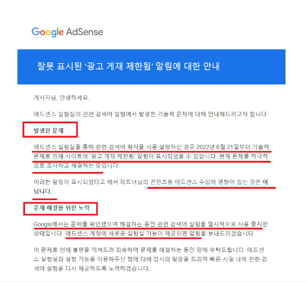 마지막으로 약 15년 정도의 애드센스 운영 경험에 따르면 실험실 참여 여부는 구글 계정 상태나 수익 등에 아무런 영향을 주지 않습니다. 아무 도움도 안되고 아무 혜택도 없어요. 수익이 감소할 확률이 높습니다. 이에 애드센스 운영 기간이 짧거나 수익금이 많지 않은 게시자 분들은 실험실에 참여하지 않는 것이 좋습니다.