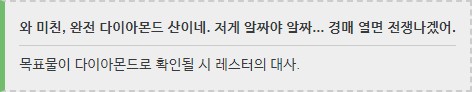 다이아몬드 4 종류가 있으면 목표물에 따라 수입 보상도 달라집니다.보상의 양이 정해져 있는 이전까지의 습격과는 달리 제한 시간 이내에 얼마나 구비하느냐에 따라 보상이 달라집니다.