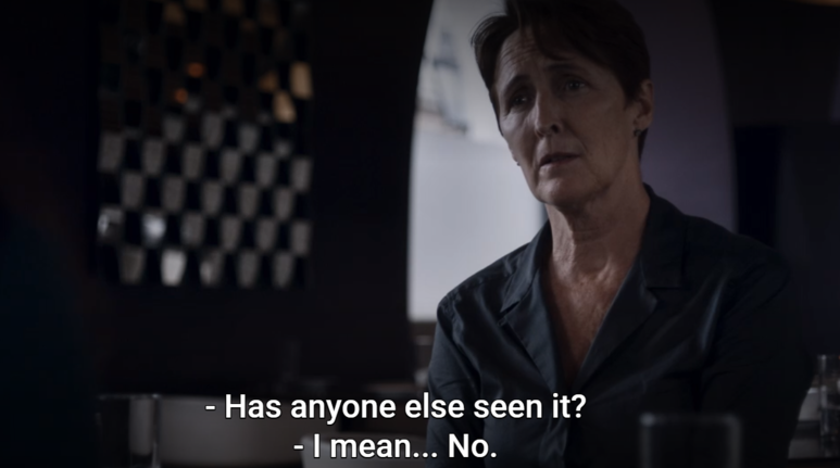 (a) Hasanyoneseent? 본 사람 있어?(b) Imean… No. 그게… 아니요.영국 BBC America 드라마 <킬링 이브 Killing Eve> 중에서