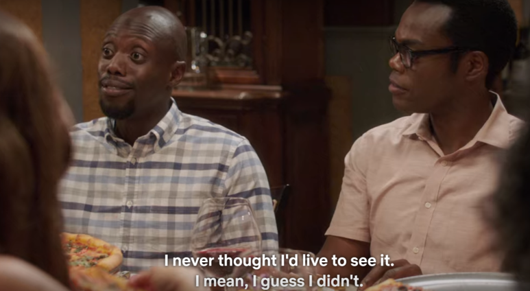 Ineverthought I’dlivetoseit. Imean, Iguess Ididn’t. 살아있는 동안에는 볼 수 없을 줄 알았는데. 아, 못 봤구나. ‘지금 말한 것을 정정해’ 미국 NBC 드라마 ‘굿플레이스 The Good Place’에서