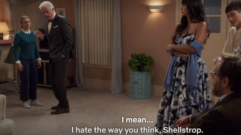 I mean… I hatethewayyothink, Shellstrop. 아니, 생각이 이상하네요.셀스트로브! ‘지금 말한 것을 정정해’ 미국 NBC 드라마 ‘굿플레이스 The Good Place’에서