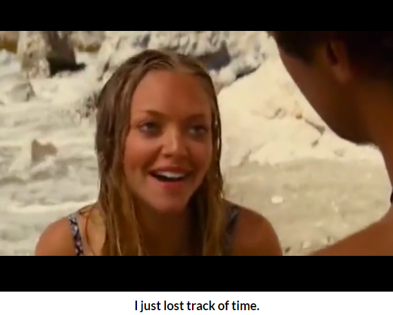 영화 맘마미아 ( 2008 ) Where ‘ v e you been ? People have been arriving all afternoon . No one ‘ s seen you . どこ に いた ?오후에 사람이 도착했어. 아무도 너를 보고 있지 않아.I am sorry, I was around the Island, I just lost track of time. 미안해, 섬 근처에 있었어. 그냥 시간 가는 줄도 몰랐다.아래 대화를 통해 한 걸음 더 자세히 알아보겠습니다.