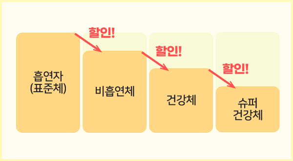 ※ 할인과 건강 등급의 내용은 회사별, 상품별로 상이합니다.