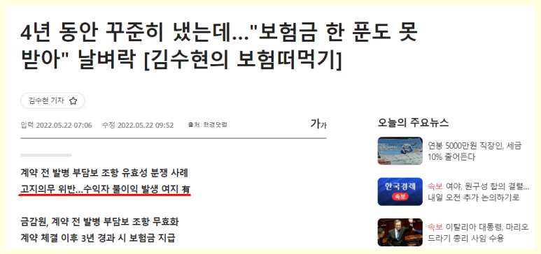 - 유병자의 상품은 회사별로 인수심사 조건이 다를 수 있으며, 알릴 의무항목도 차이가 있습니다. 그렇기 때문에 가입 시 제가 제대로 의무 고지 사항을 잘 지켰는지 확인이 필수입니다.※ 실제로 의무 고지 사항 때문에 계약이 취소되는 사례도 있습니다.